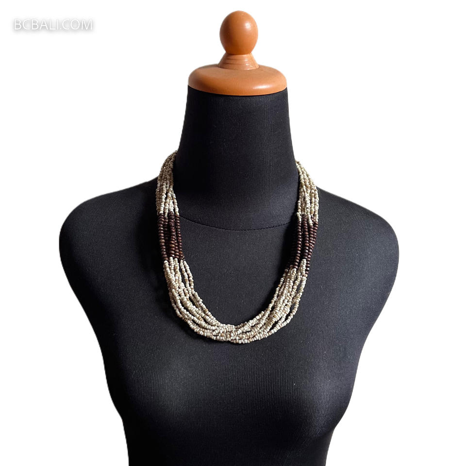 สร้อยคอลูกปัดทำด้วยมือโซ่ไม้ที่เป็นเอกลักษณ์ของช่างฝีมือชาวบาหลีการออกแบบดั้งเดิมที่มีสร้อยคอลูกปัดแฟชั่นมุก