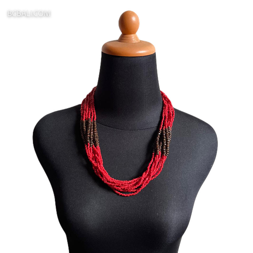 สร้อยคอลูกปัดทำจากไม้แฮนด์เมดไม่เหมือนใครในบาหลี