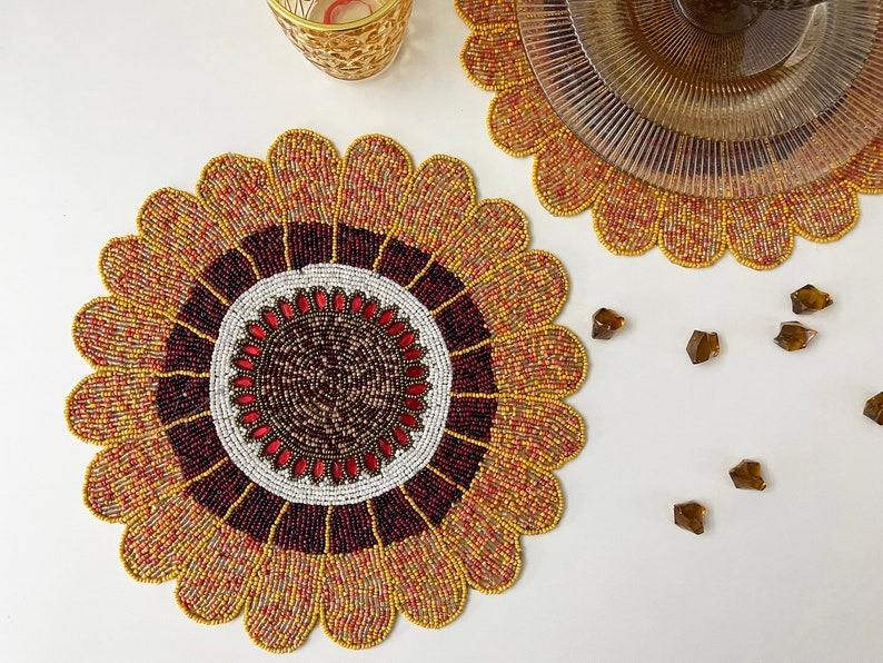 แผ่นรองจานรูปดอกกุหลาบ งานปักมือประดับลูกปัด หรูหรา เป็นมิตรกับสิ่งแวดล้อม สำหรับใช้ในบ้าน ชิ้นเดียว ดีไซน์ใหม่