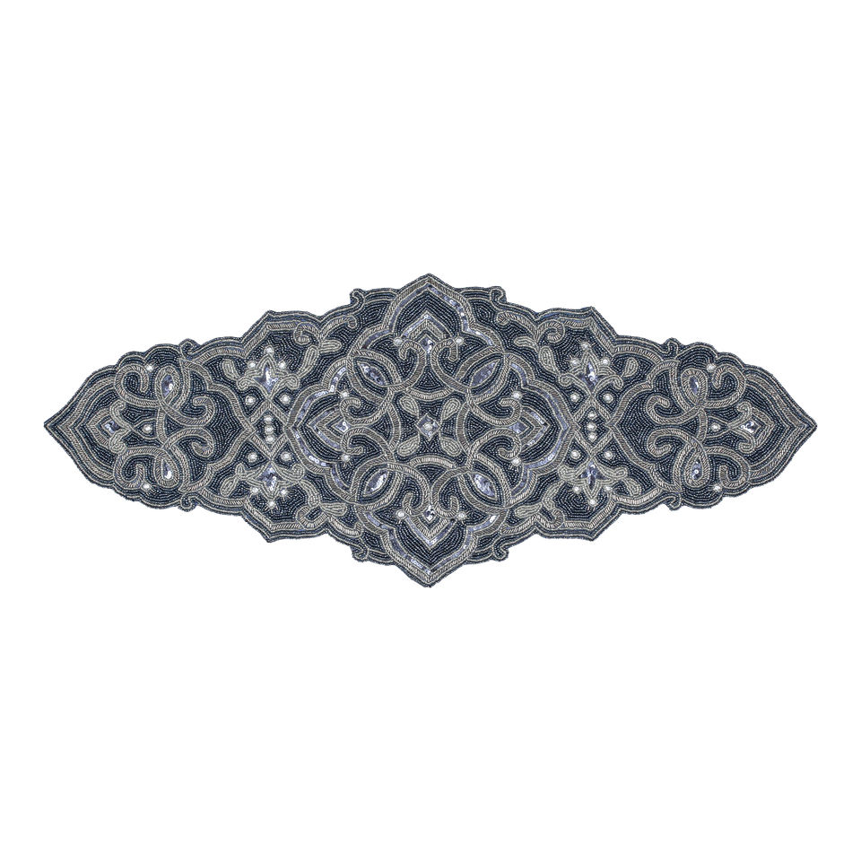 Stunning glass beads on luxurious polyester fabric