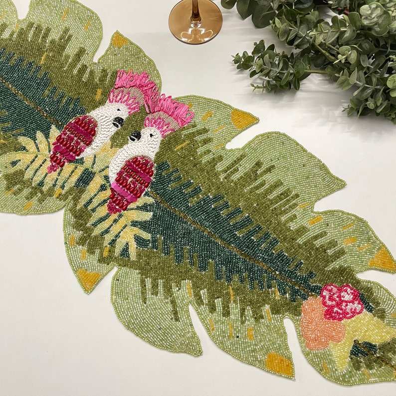 ผ้าปูโต๊ะทำด้วยมือลูกปัดถักลายดอกไม้ใบไม้ดอกไม้นกสำหรับตกแต่งโต๊ะรับประทานอาหาร