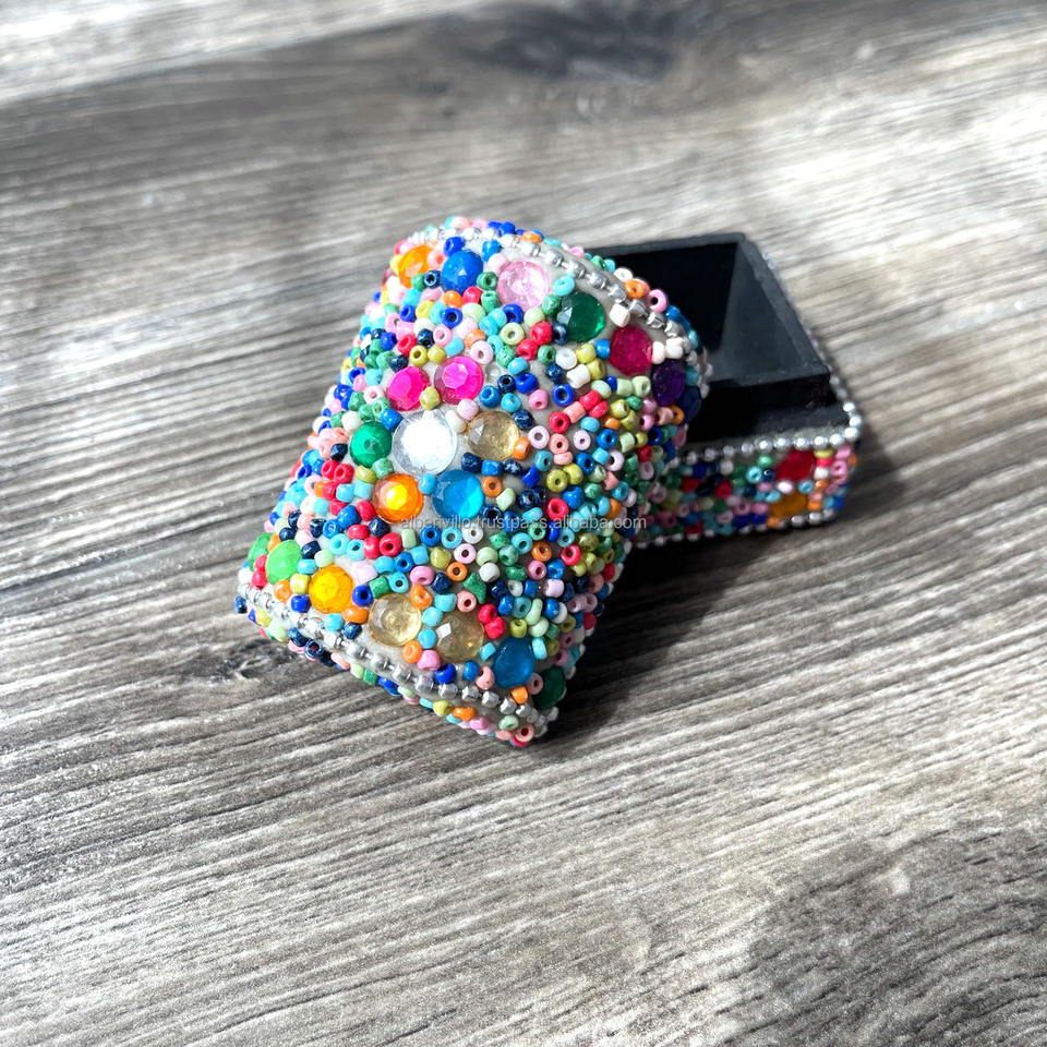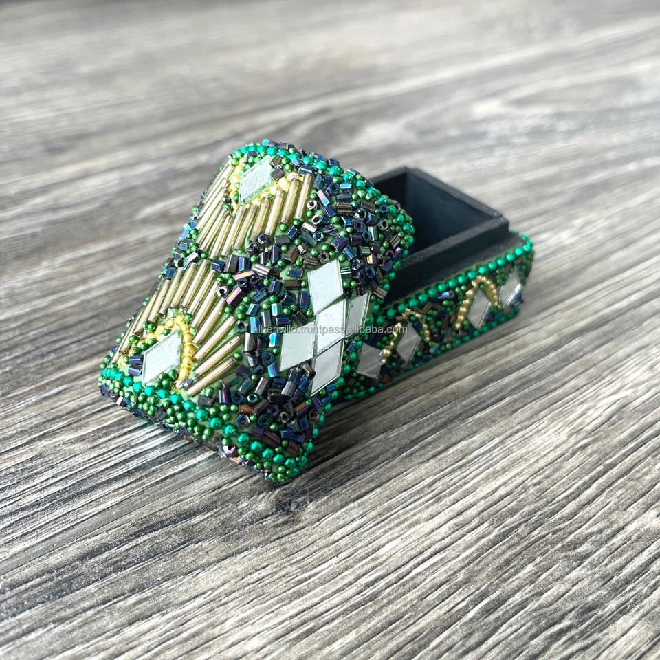 กล่องใส่เครื่องประดับไม้ประดับลูกปัดทำมือ สำหรับเก็บเครื่องประดับ ของชำร่วยงานแต่งงาน ของที่ระลึกสวยงาม ผลิตในอินเดีย