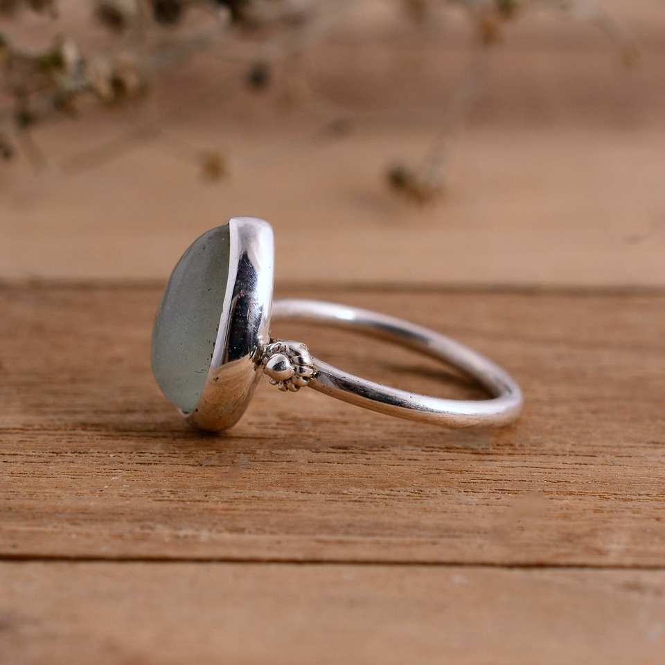 แหวนเงินแท้ 925 ประดับพลอยอะความารีนทรงหยดน้ำสีฟ้าธรรมชาติ ดีไซน์ขอบแบบ Bezel งานแฮนด์เมด สวยงามหรูหรา เหมาะสำหรับวันวาเลนไทน์