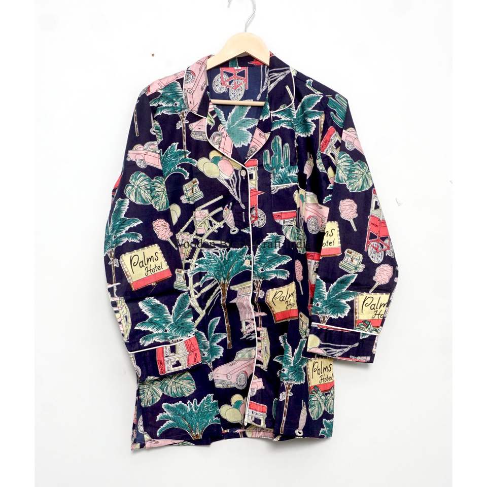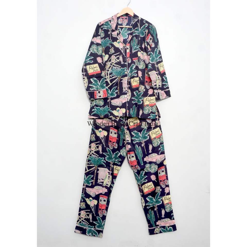 Handmade Beautiful Cotton PJ Set aesthetic and unique Printed Lightweight Breathable Women's 100% Cotton Pajamas Summer Home