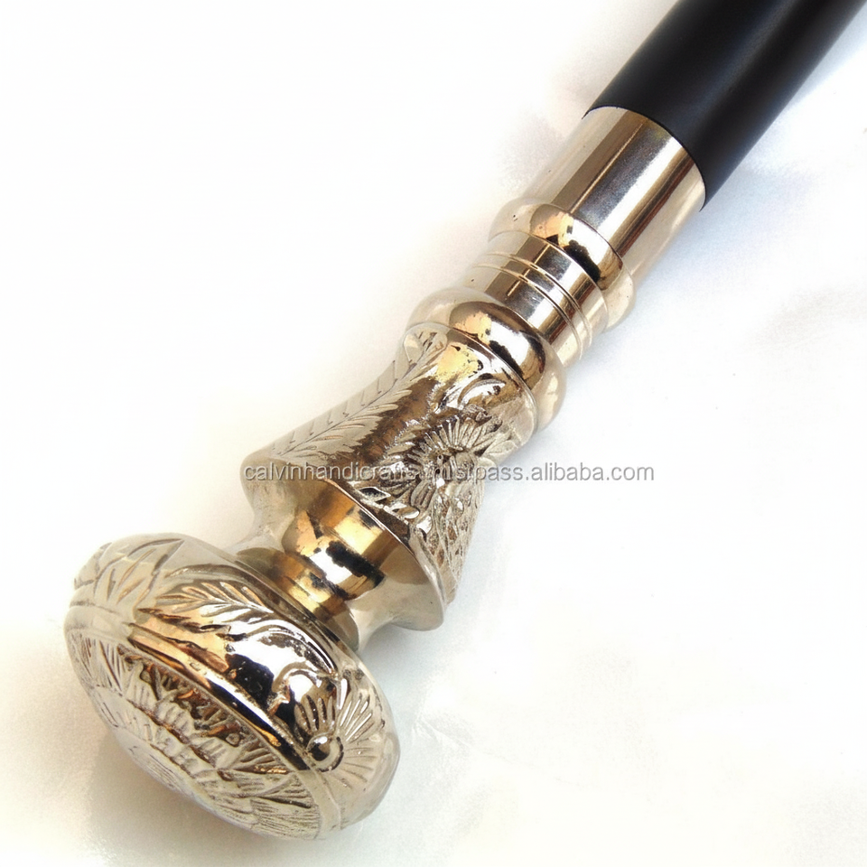 แฮนด์เมดที่สวยงามวินเทจของแข็งเงินทองเหลืองดอกไม้ออกแบบจับโบราณเดินติดตกแต่งเดิน CHWKS36025