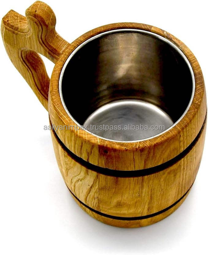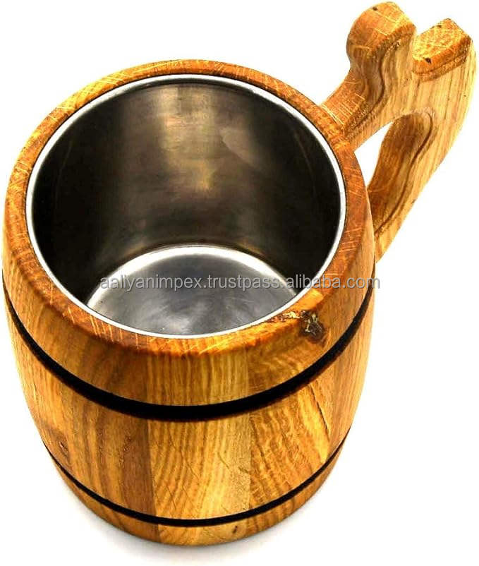 แก้วเบียร์ทำด้วยมือแก้วเบียร์สไตน์ (ไม้สีเบจ) เหยือกไม้โอ๊คแก้วเครื่องดื่ม