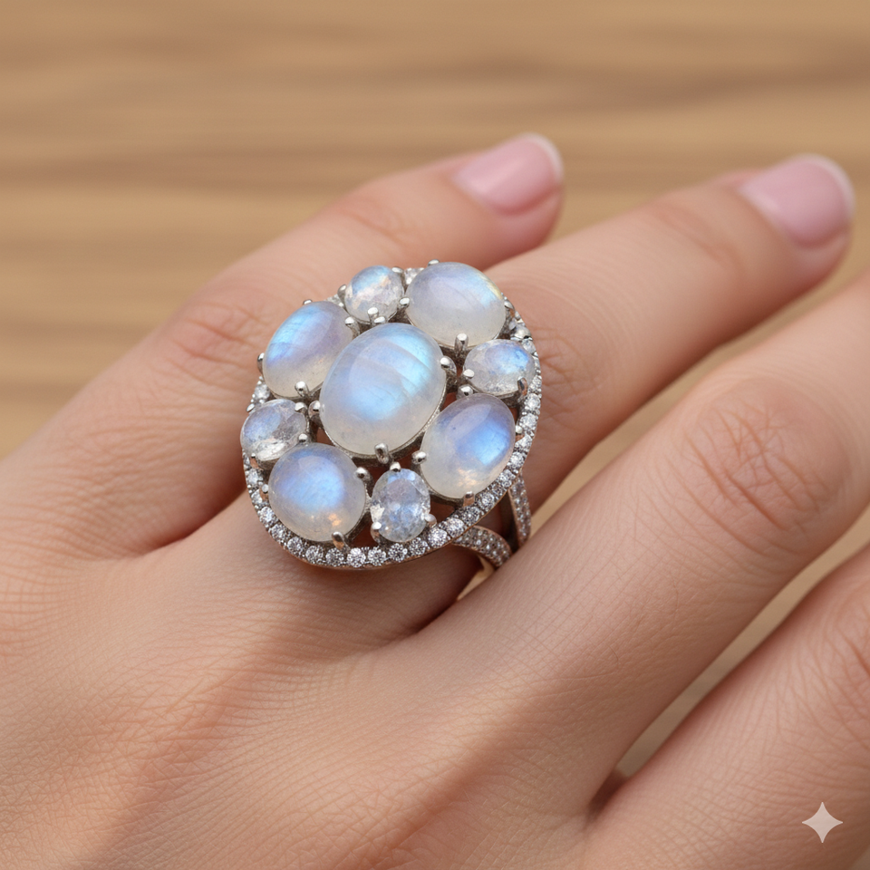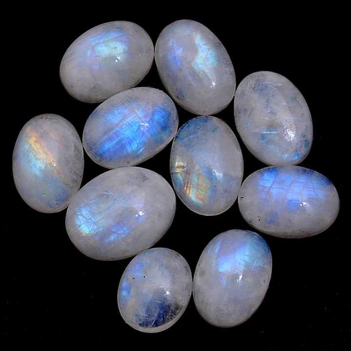 เครื่องประดับทำมือประดับพลอยประจำเดือนเกิด มูนสโตนสีน้ำเงินรุ้งธรรมชาติ รูปทรงวงรี เจียระไนแบบเหลี่ยม คุณภาพส่งออก ขายส่งจำนวนมาก ราคาพิเศษ