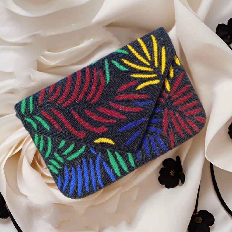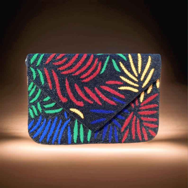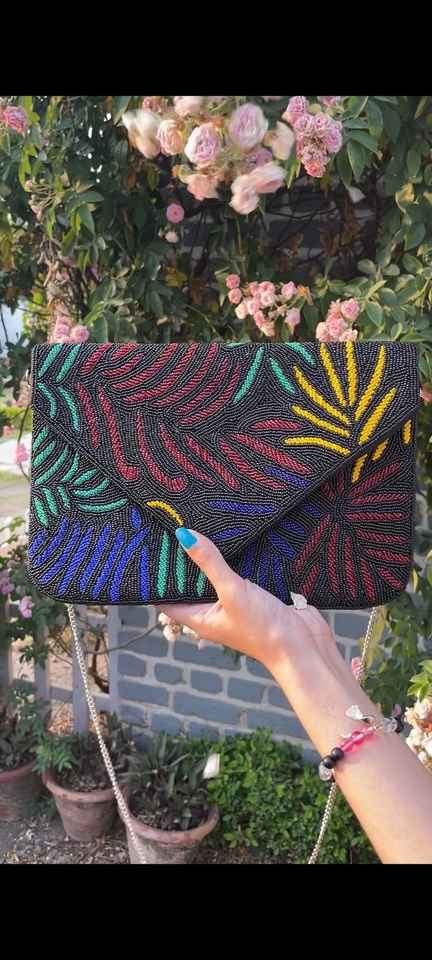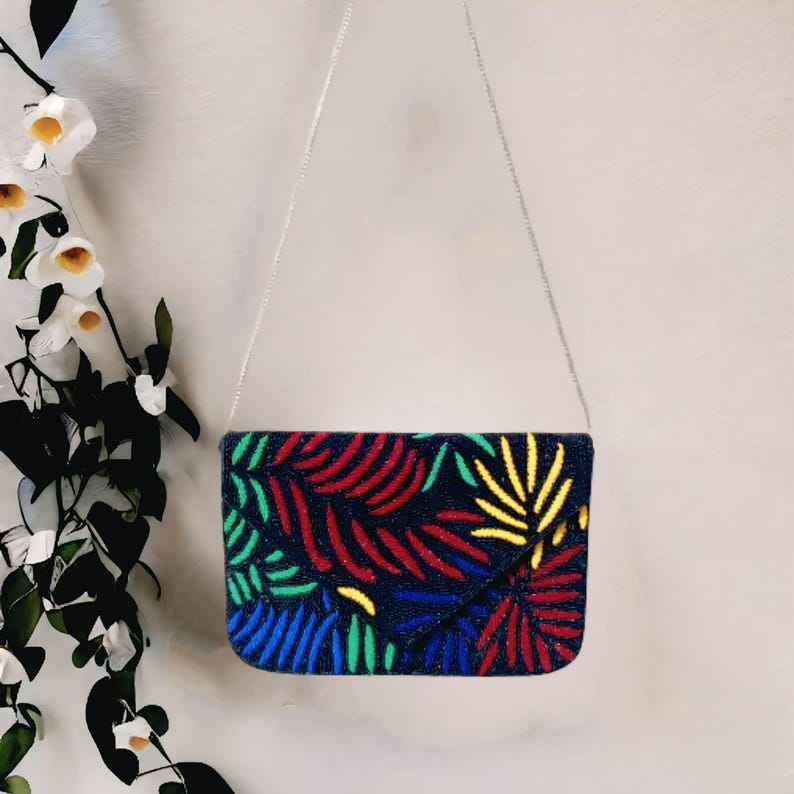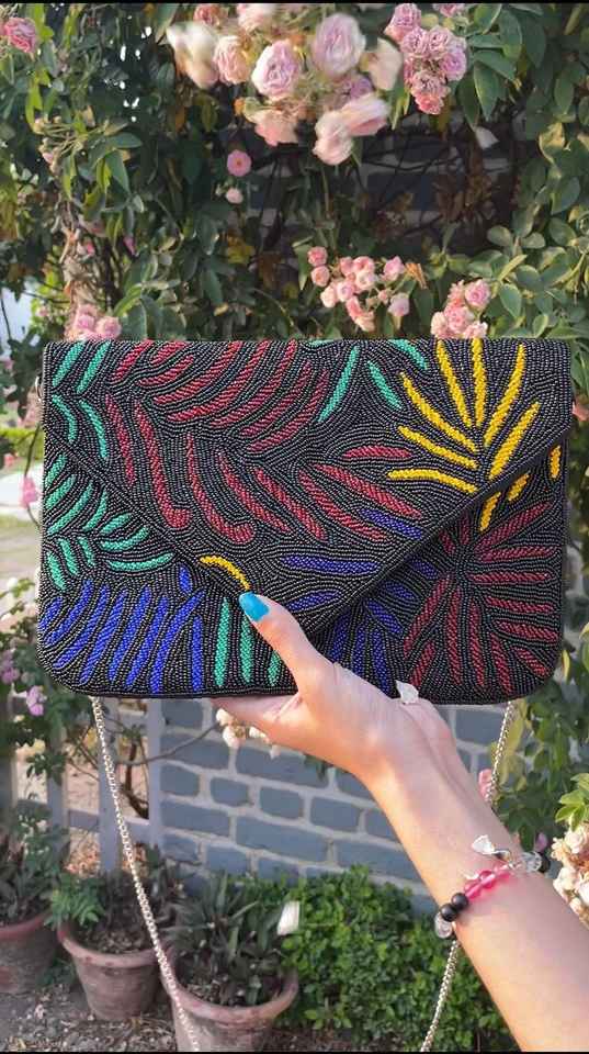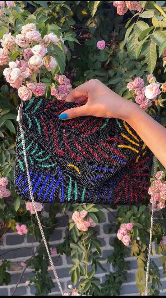 Handmade Black Beaded Bag Multicolor Bead Purse Boho Shoulder Bag Handmade Beadwork Clutch Festival Crossbody