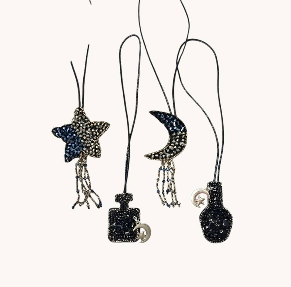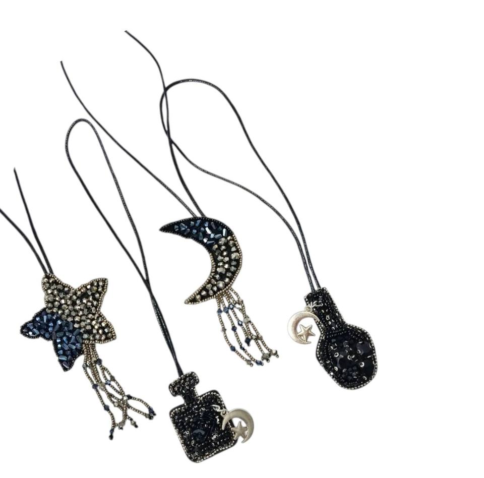 ชุดแขวนประดับลูกปัดสีดำทำมือสำหรับรอมฎอน – ลายโคมไฟรูปดาวและพระจันทร์, ของตกแต่งวันอีดแบบอิสลาม, งานปักลายซาร์ดอซี