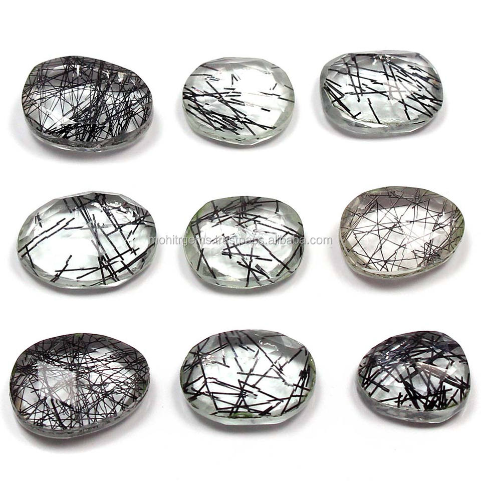 ควอตซ์สีดำทรงบริลเล็ตต์คัต งานแฮนด์เมด คุณภาพพรีเมียม รูปทรงโรสคัตสวยงาม หินหลวมผสมรูไทล์ ขนาด 8-25 มม. น้ำหนัก 2-10 กรัม รูปทรงไม่สม่ำเสมอ