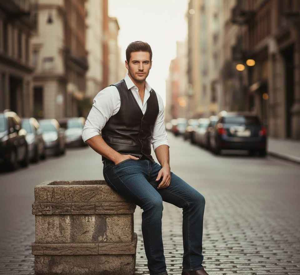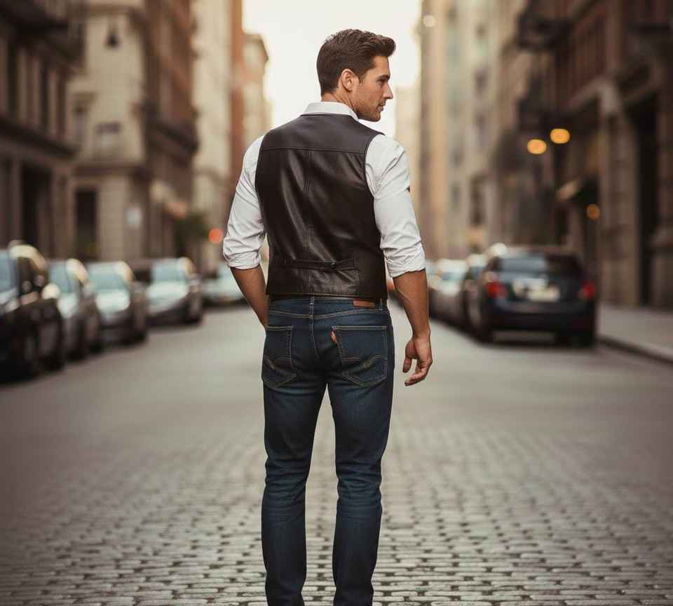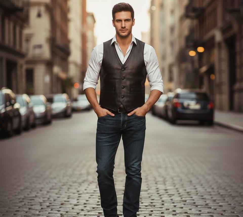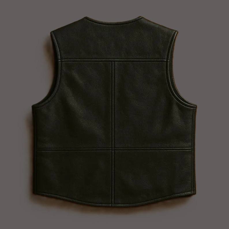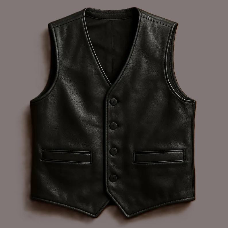 เสื้อกั๊กหนังแท้สีดำทำมือ สไตล์คาวบอยไบค์เกอร์ลำลองสำหรับฤดูหนาว คุณภาพพรีเมียม รุ่น Western Champ King