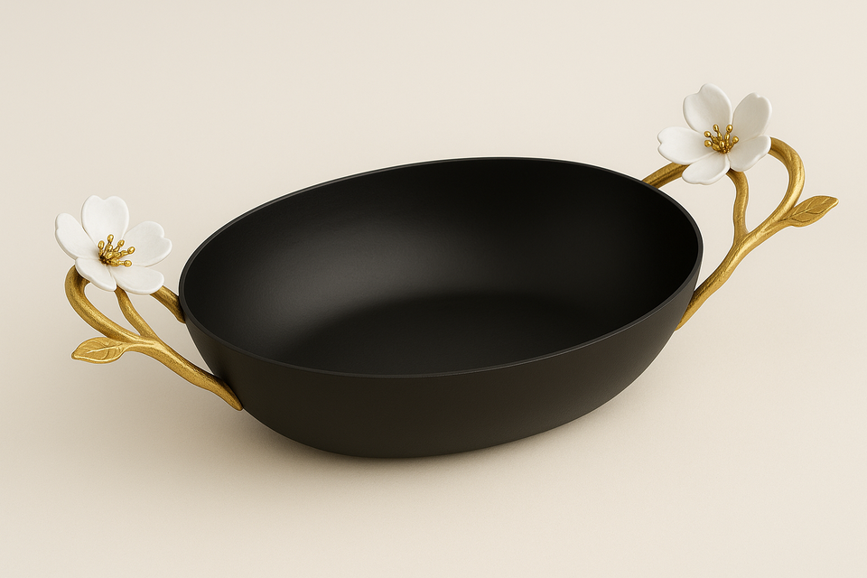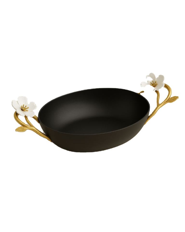 Product name:Handmade Black Iron Oval Bowl with Gold Branch Handles Bowl