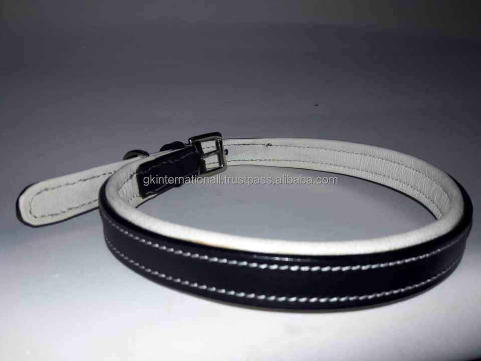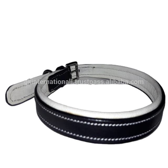 ปลอกคอสุนัขหนังสีดำทำด้วยมือพร้อมวัวนุ่มและเย็บเต็มสแตนเลสนิกเกิลชุบหัวเข็มขัดแหวน D