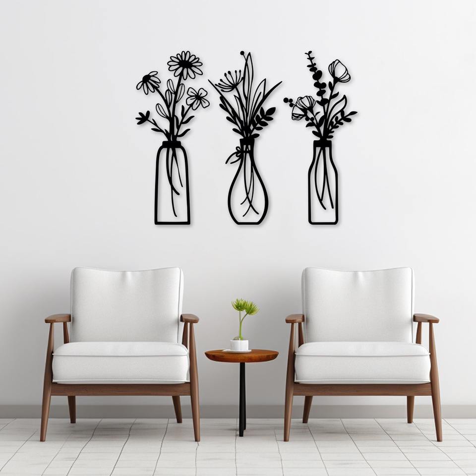 แจกันดอกไม้โลหะสีดำทำมือ งานศิลปะติดผนังตกแต่งสไตล์โมเดิร์น เหมาะสำหรับตกแต่งห้องครัว ห้องนั่งเล่น และล็อบบี้