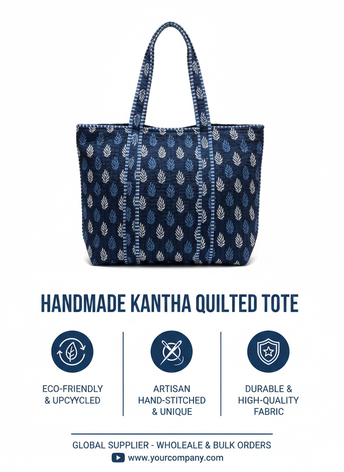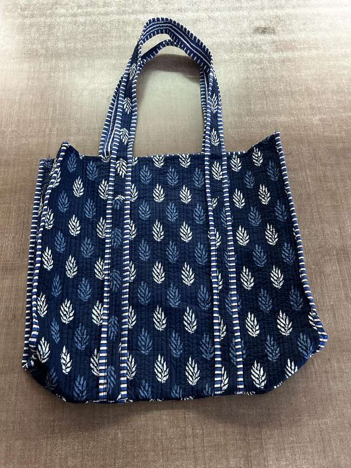 กระเป๋าโท้ทผ้าส่าหรีรีไซเคิลลายมอทีฟสีดำงานแฮนด์เมด แบบควิลท์ สะพายไหล่สไตล์โบโฮ กระเป๋าถือแบบสองด้าน กระเป๋าถือสไตล์ชาติพันธุ์ที่ยั่งยืน ทนทาน