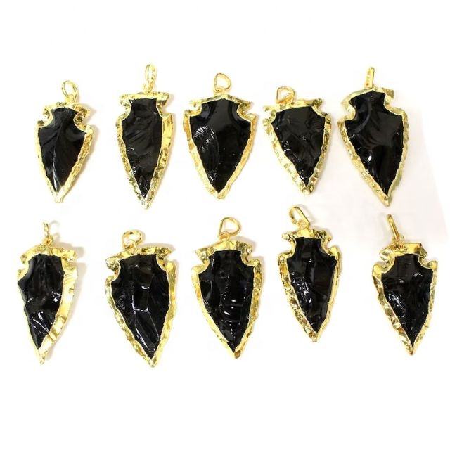 ทำด้วยมือสีดำหินออบซิเดียนชุบทองไฟฟ้าจักระสิ่งประดิษฐ์จี้สไตล์แผ่นเครื่องประดับสร้อยคอที่มีดีไซน์หัวลูกศร