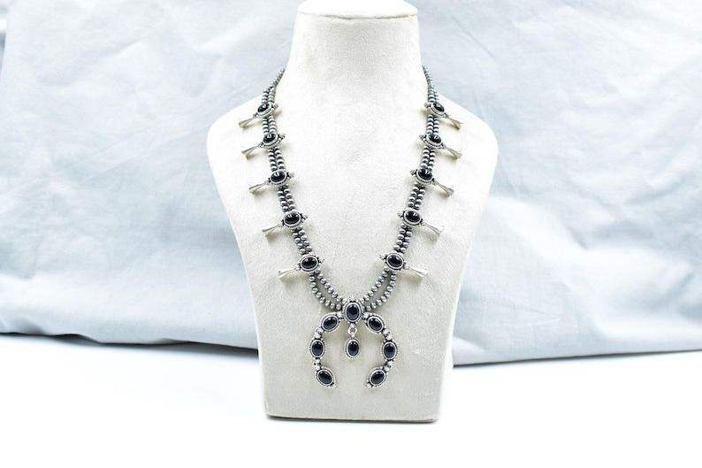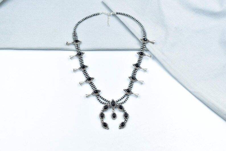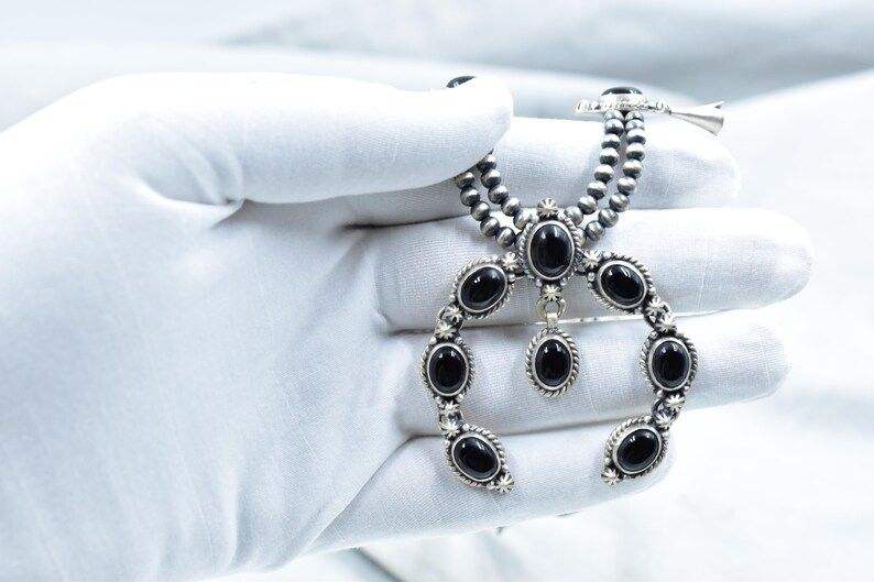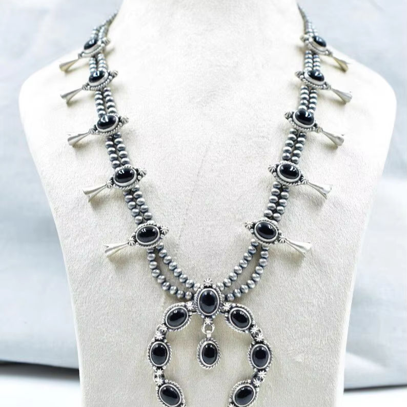 สร้อยคอดอกสควอชโอนิกซ์สีดำทำด้วยมือโซ่แบบปรับได้เงินสเตอร์ลิง