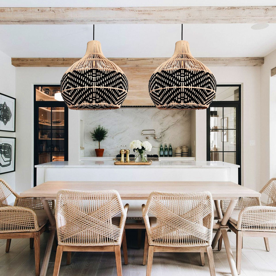 โคมไฟเพดานหวายสานสีดำทำมือ โคมไฟหวายสไตล์โบโฮ ตกแต่งแบบธรรมชาติ พร้อมไฟไม้ไผ่จากเวียดนาม