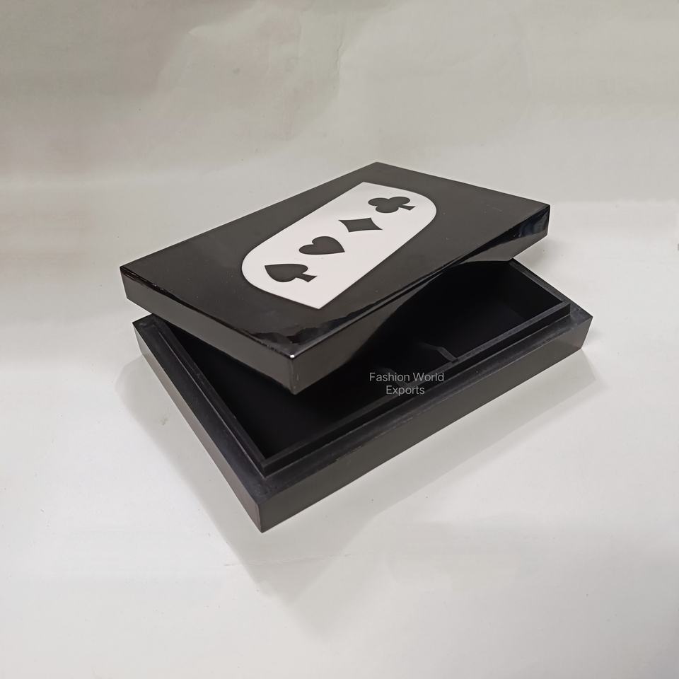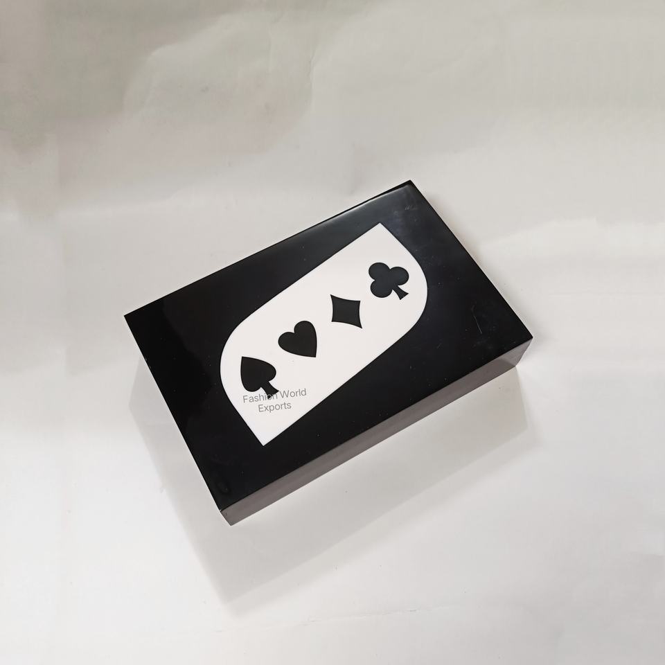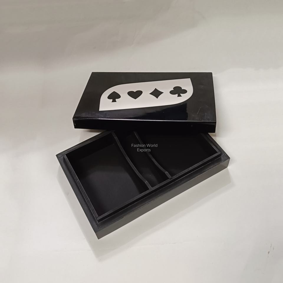 กล่องเก็บไพ่ไม้สีดำทำมือ พร้อมช่องแบ่งสำหรับจัดเก็บ กล่องจัดระเบียบไพ่สุดหรูสำหรับชุดโป๊กเกอร์