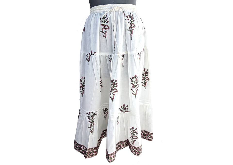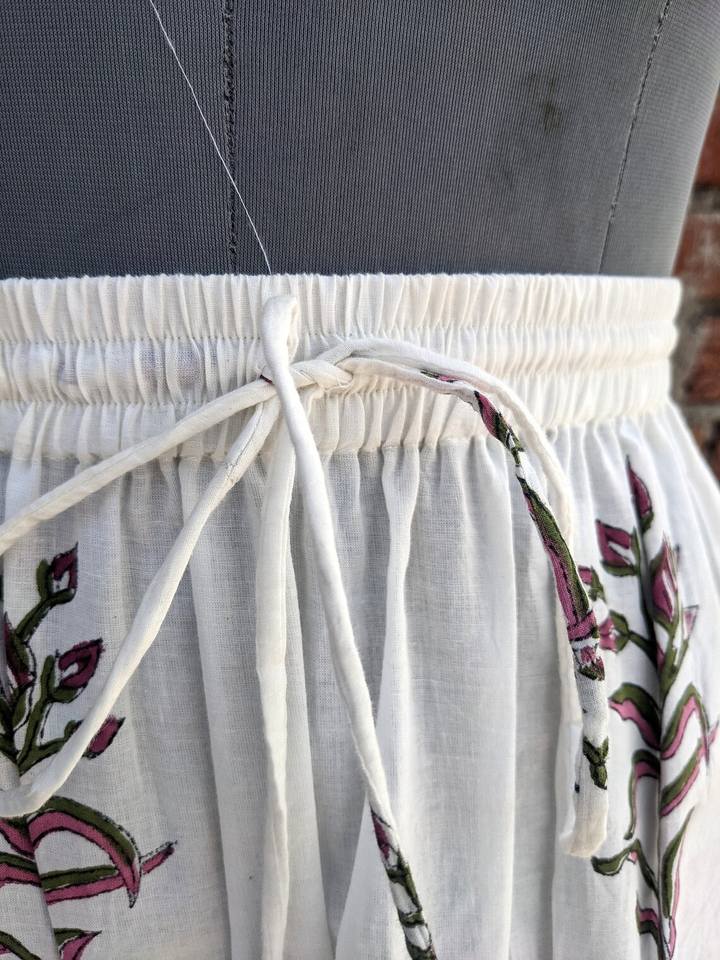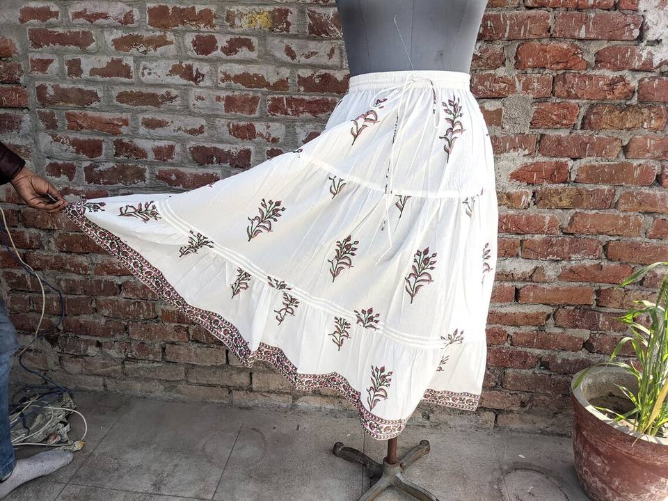 กระโปรงแม็กซี่ผ้าฝ้ายพิมพ์ลายดอกไม้ปักมือ ความยาวระดับข้อเท้า สไตล์ลำลองสำหรับผู้หญิง ลายชาติพันธุ์ ใส่สบายช่วงฤดูร้อน เอวยางยืด ระบายอากาศได้ดี