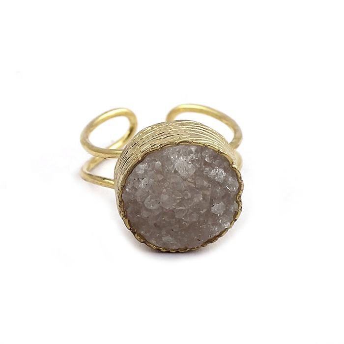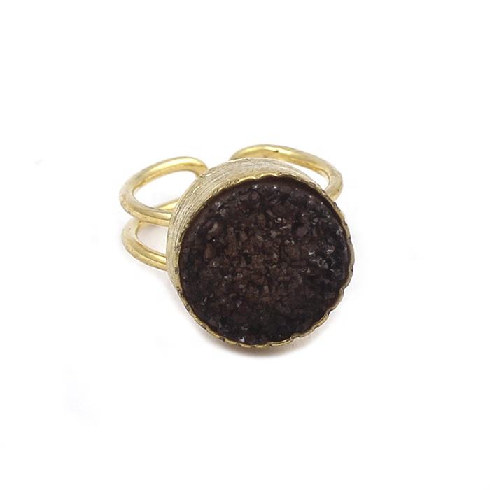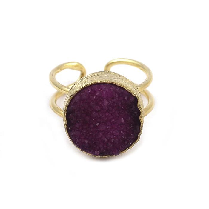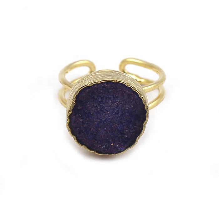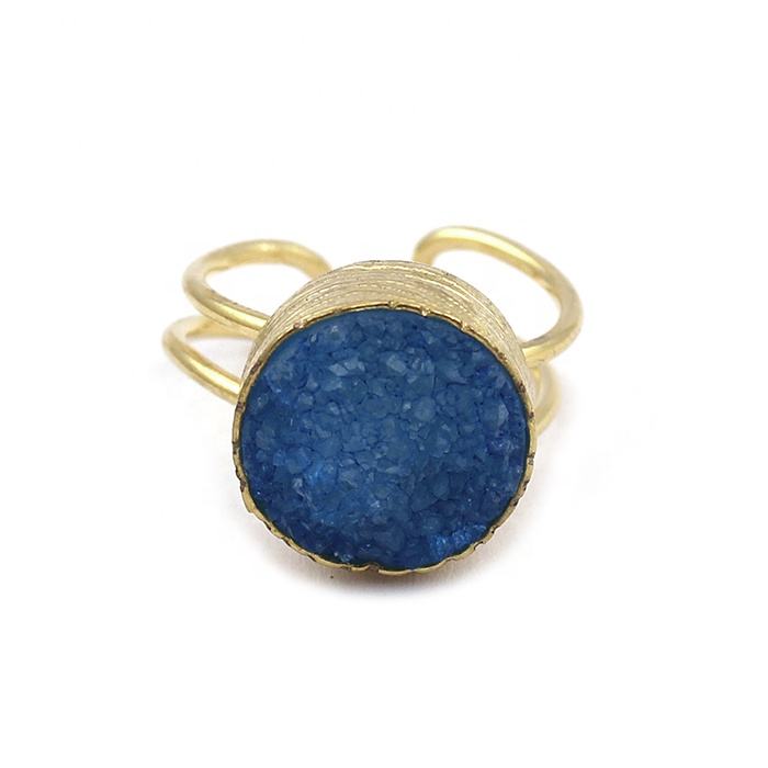 ทำด้วยมือสีฟ้า druzy ชุบทองปรับได้แหวนหินอัญมณีดรูซี่ออกแบบเครื่องประดับแฟชั่นแหวนสบาย