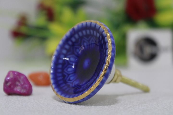 ลูกบิดเซรามิกสีฟ้าทรงกลมทำด้วยมือสำหรับห้องครัวห้องนอนเฟอร์นิเจอร์ตกแต่งห้องนั่งเล่นแบบดั้งเดิม