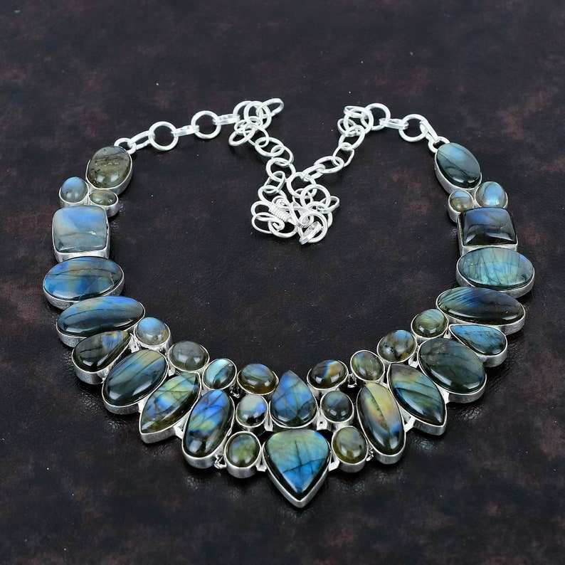 สร้อยคอพลอยลาบราดอไรต์สีฟ้าทำด้วยมือ-เครื่องประดับเงินสเตอร์ลิง925-ของขวัญจี้ธรรมชาติที่สมบูรณ์แบบ