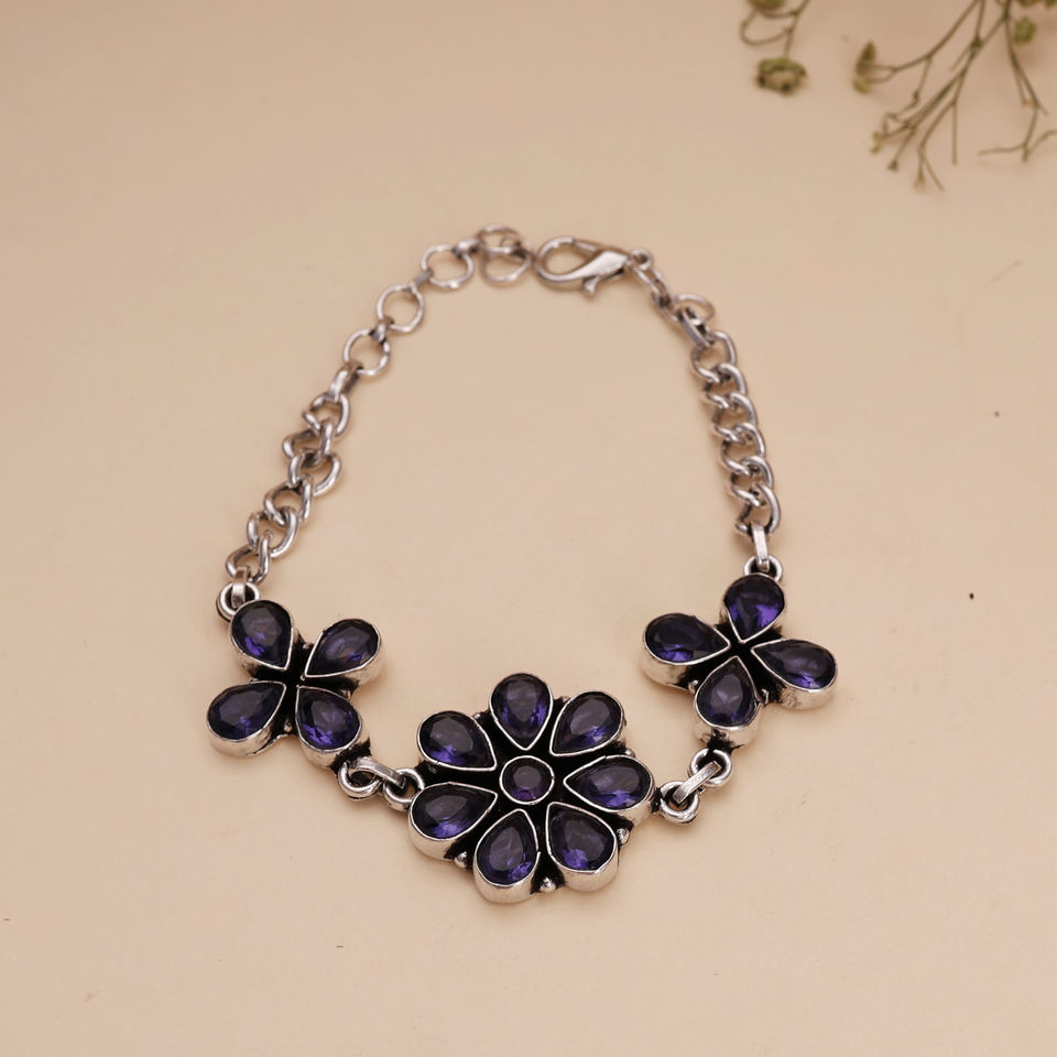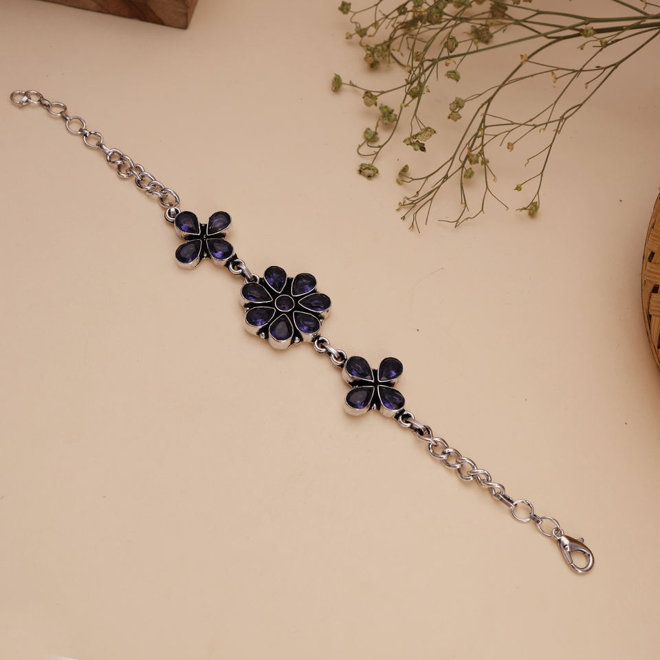กำไลข้อมือแฟชั่นประดับลูกปัดทองเหลืองชุบเงินและพลอยสีน้ำเงินลายดอกไม้สำหรับผู้หญิง เหมาะสำหรับงานปาร์ตี้ ของขวัญเครื่องประดับ