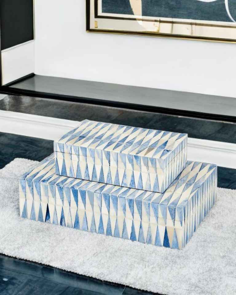 กล่องกระดูกธรรมชาติลายกราฟิกสีน้ำเงินทำด้วยมือเปิดพร้อมฝาสำหรับการจัดเก็บเครื่องประดับที่เน้นเสียงของฮวงจุ้ยบ้าน