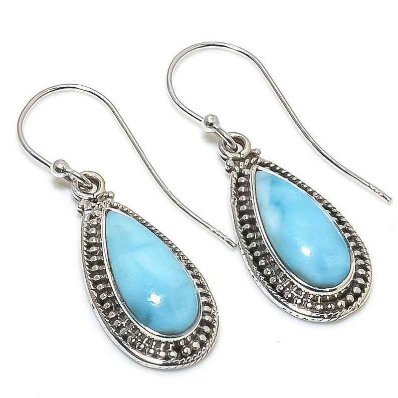ต่างหูห้อยอัญมณีลาริมาร์สีน้ำเงินทำด้วยมือ925แข็งชุบทองเงินสเตอร์ลิงของขวัญวันเกิดสุดหรู