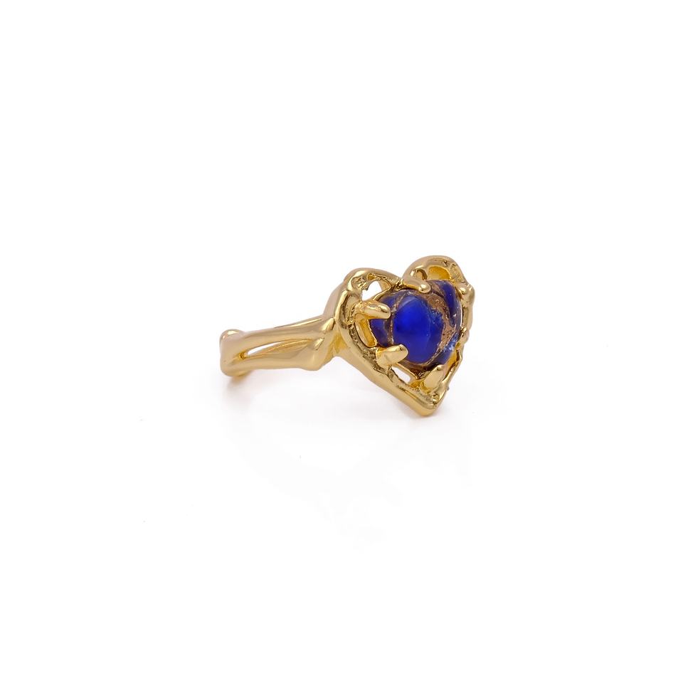 แหวนหยกโมฮาว์ทำด้วยมือสีฟ้าป้องกันการเสื่อมเสียเคลือบทองอัญมณีพื้นผิวดีไซน์รูปหัวใจแหวนคู่เครื่องประดับแฟชั่นอินเทรนด์