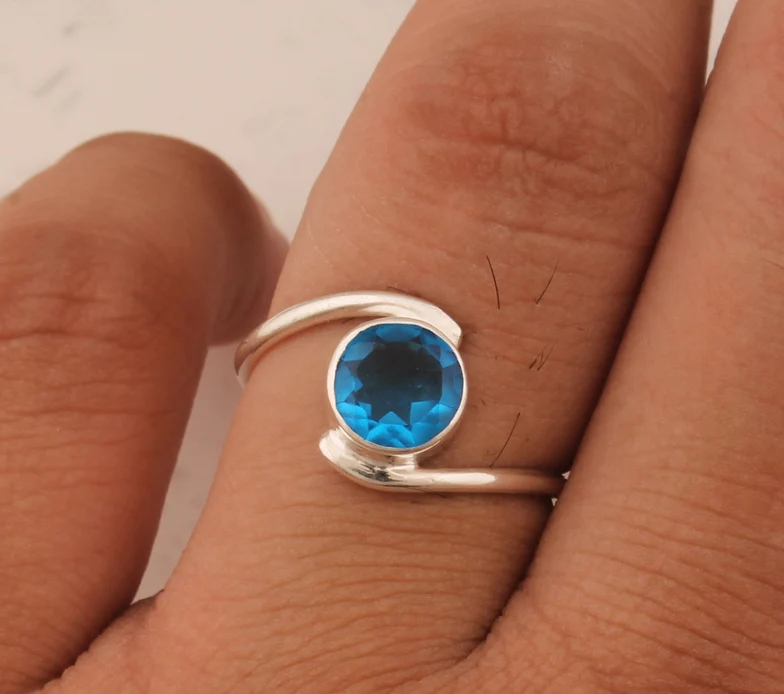 แหวนเงินแท้925ควอตซ์สีน้ำเงินทำด้วยมือสำหรับผู้ชายผู้หญิงแหวนแต่งงานและของขวัญอัญมณีแฟชั่นสำหรับคุณแม่ตัด