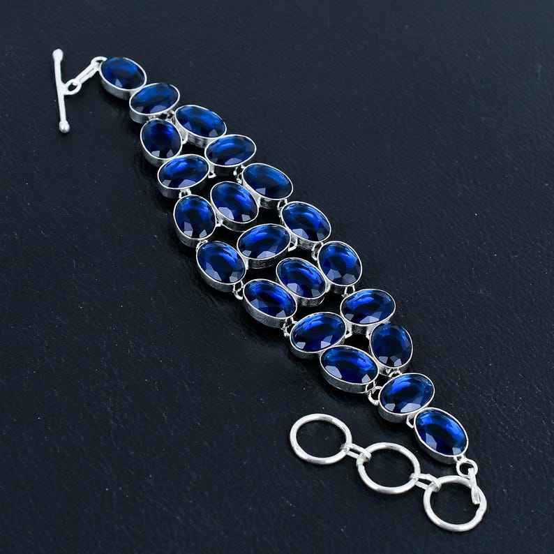 สร้อยข้อมือไพลินสีน้ำเงินทำด้วยมือ925เงินสเตอร์ลิงชุบปรับได้สร้อยข้อมืออัญมณีเครื่องประดับแฟชั่น