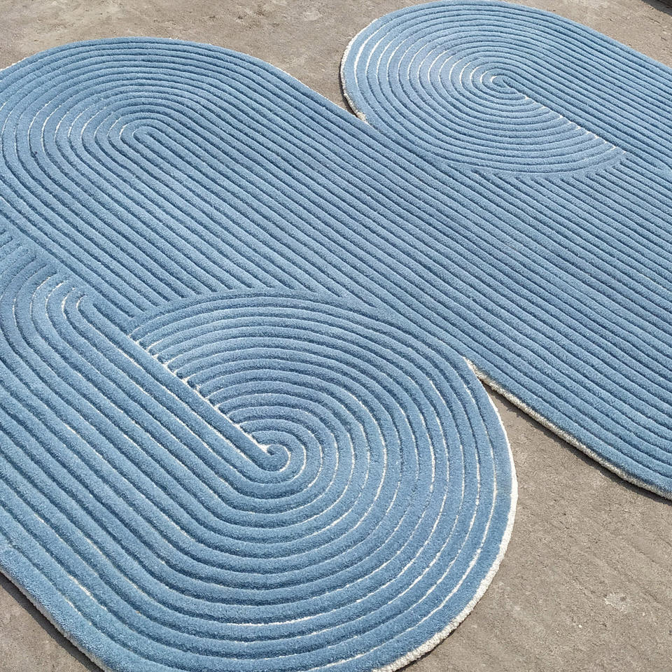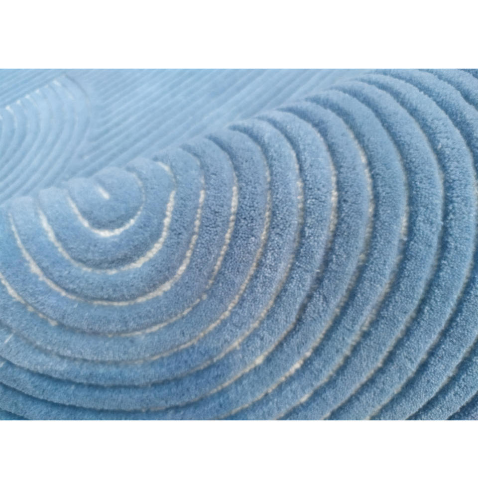 พรมปูพื้นขนสัตว์สีฟ้าขาวทำด้วยมือพรมปูพื้นแบบวงกลมนุ่มทันสมัยพรมซักได้สำหรับตกแต่งบ้านห้องรับแขกห้องนอนปิกนิก