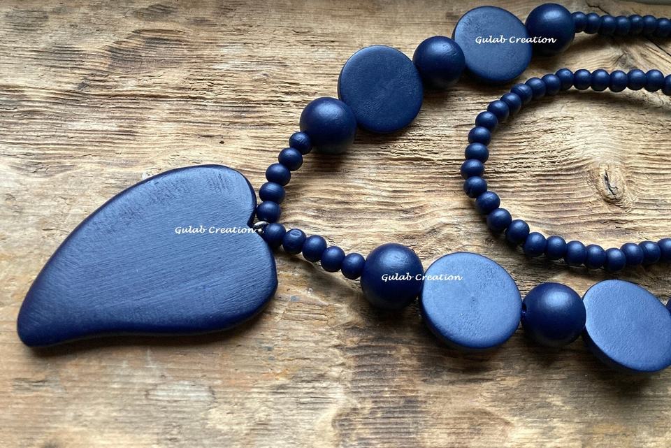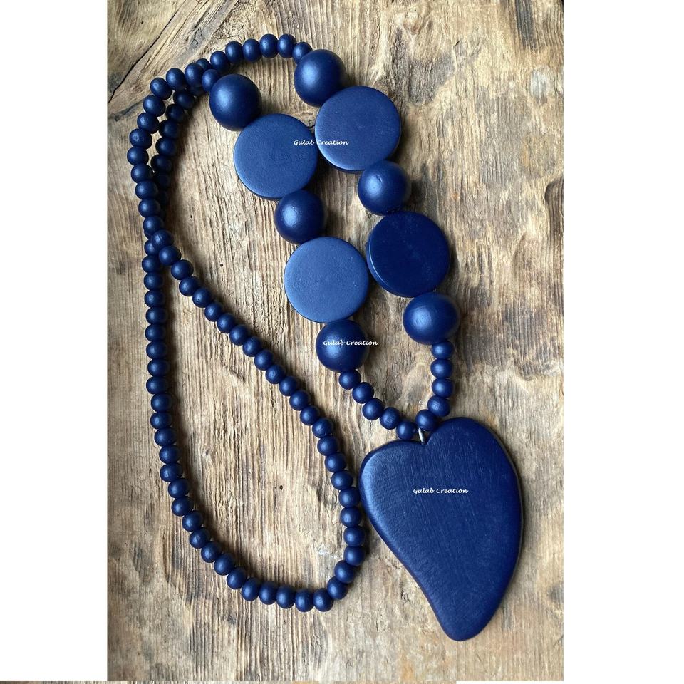 สร้อยคอยาวทำด้วยมือรูปหัวใจไม้สีฟ้าเครื่องประดับแฟชั่นสไตล์โบฮีเมียนลุคสำหรับผู้หญิงมีเสน่ห์แบบเรียบง่าย
