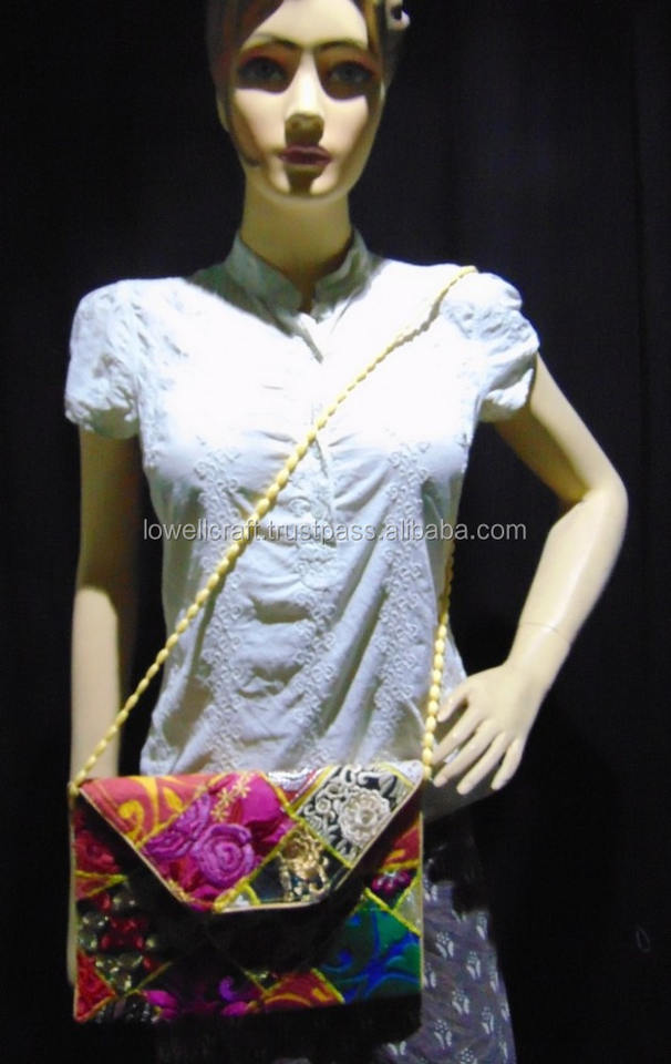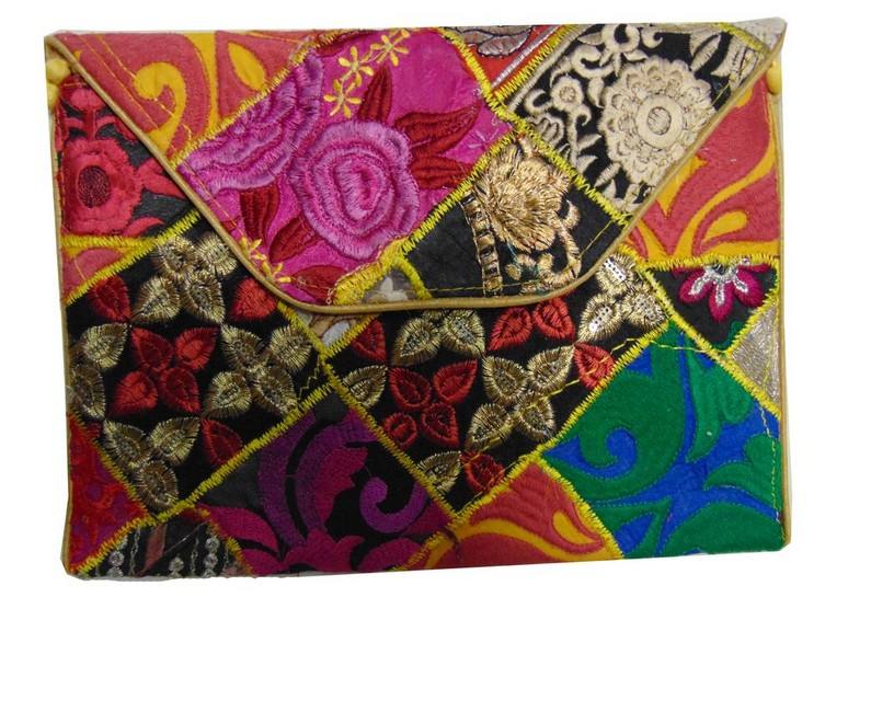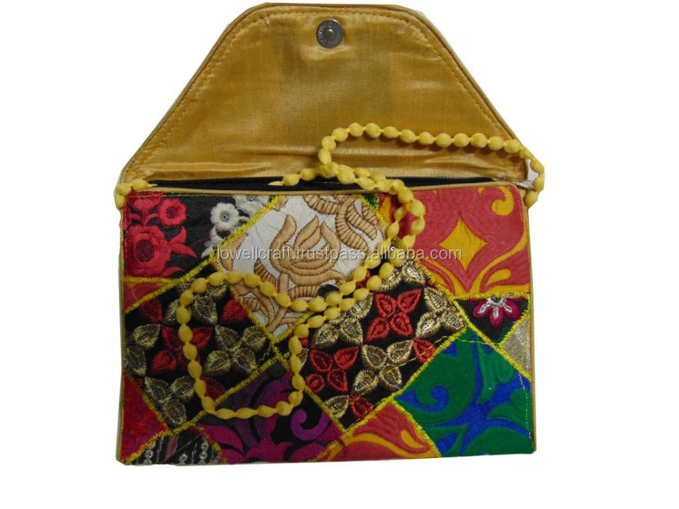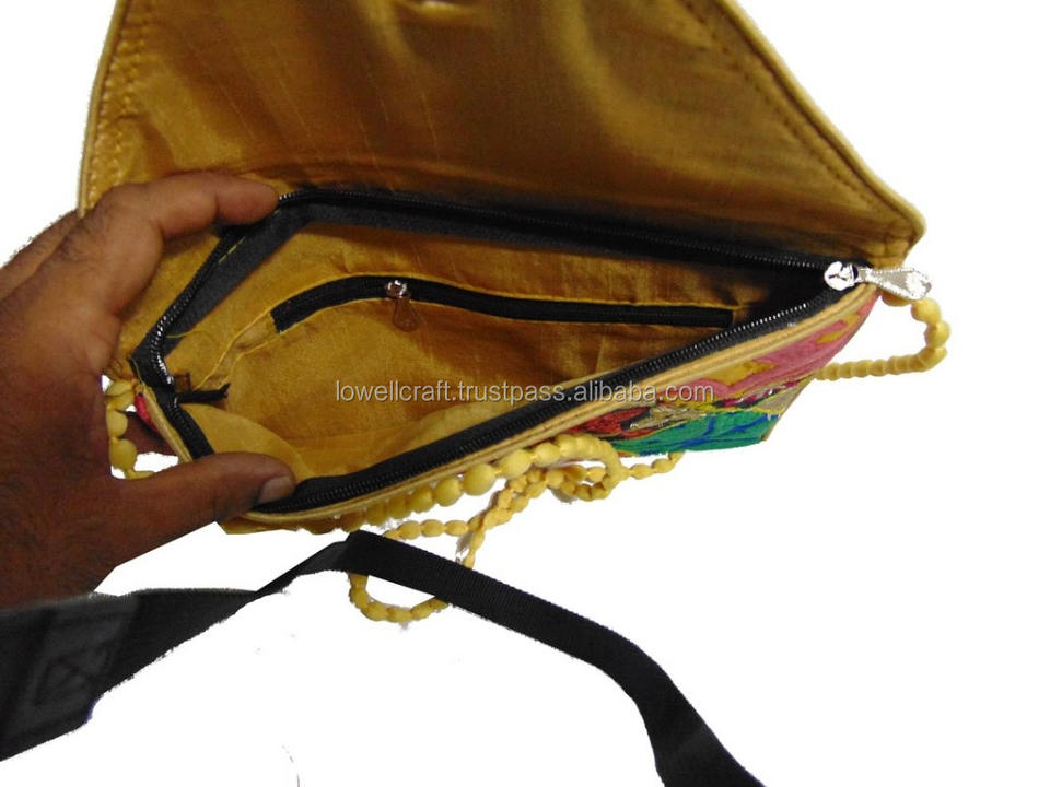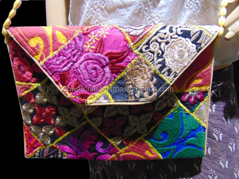 กระเป๋าคลัทช์ปักลายสไตล์โบฮีเมียนทำมือ พร้อมซิปปิด ซับในผ้าฝ้าย สายสะพายเส้นเดียว