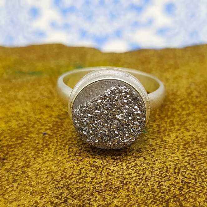 เครื่องประดับสไตล์โบฮีเมียนทำด้วยมือ925สเตอร์ลิงเงินธรรมชาติสีเงินธรรมชาติไทเทเนียม druzzy ทรงกลมแหวนหินสำหรับเด็ก