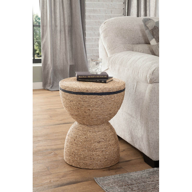 โต๊ะข้างเตียงปลายหญ้าทะเลทรงกลมสไตล์โบฮีเมียนทำด้วยมือรูปทรงกลมไม่เหมือนใคร
