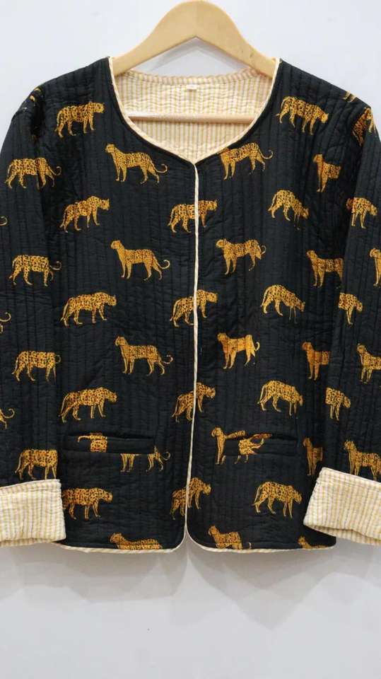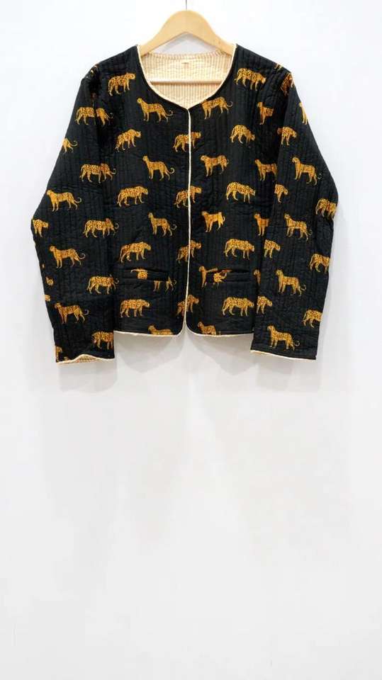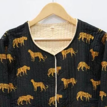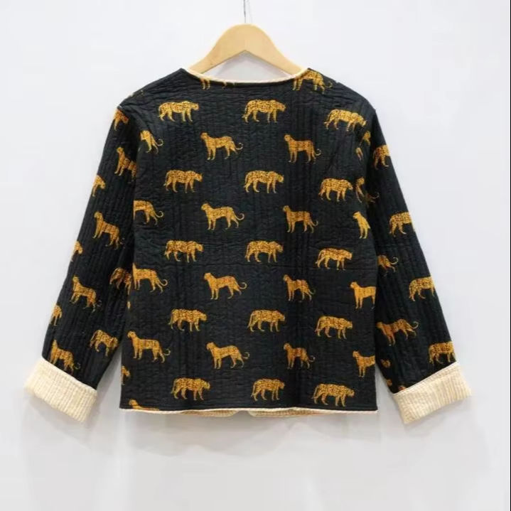เสื้อโค้ทเสือพิมพ์ลายดอกไม้สำหรับผู้หญิงสไตล์โบฮีเมียนทำด้วยมือพร้อมตะขอปิดเสื้อนอกลำลองผ้าทอ