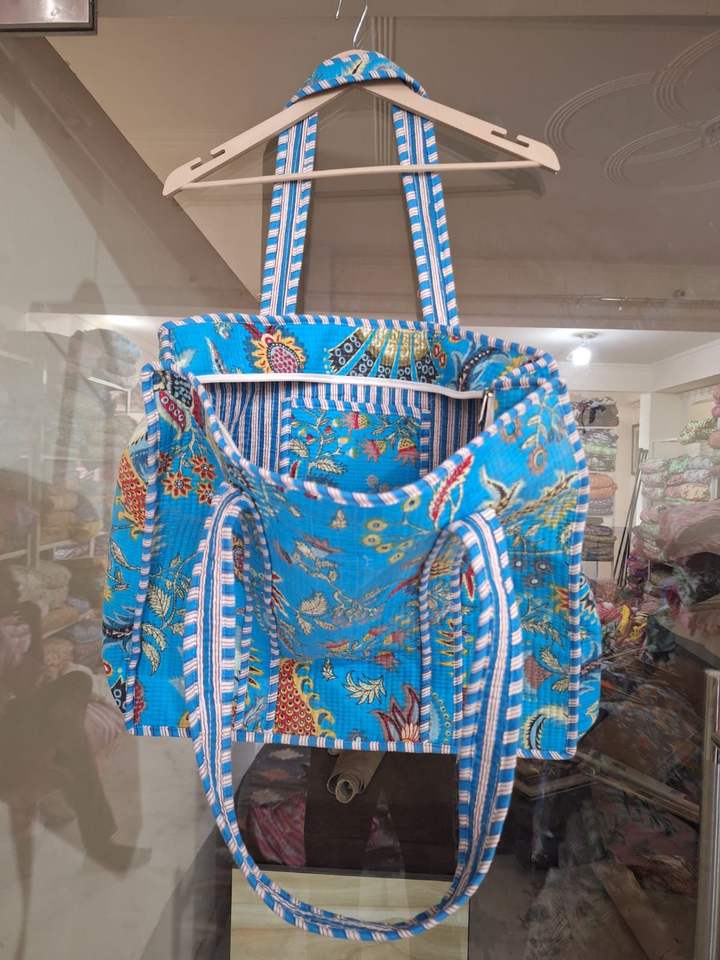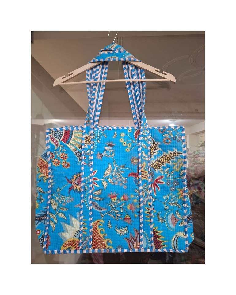 กระเป๋าผ้าคอตตอนพิมพ์ลายโบโฮทำด้วยมือกระเป๋าสะพายไหล่สีฟ้าแบบนำกลับมาใช้ใหม่ได้เป็นมิตรกับสิ่งแวดล้อมสำหรับใช้ในชีวิตประจำวันในฤดูร้อน
