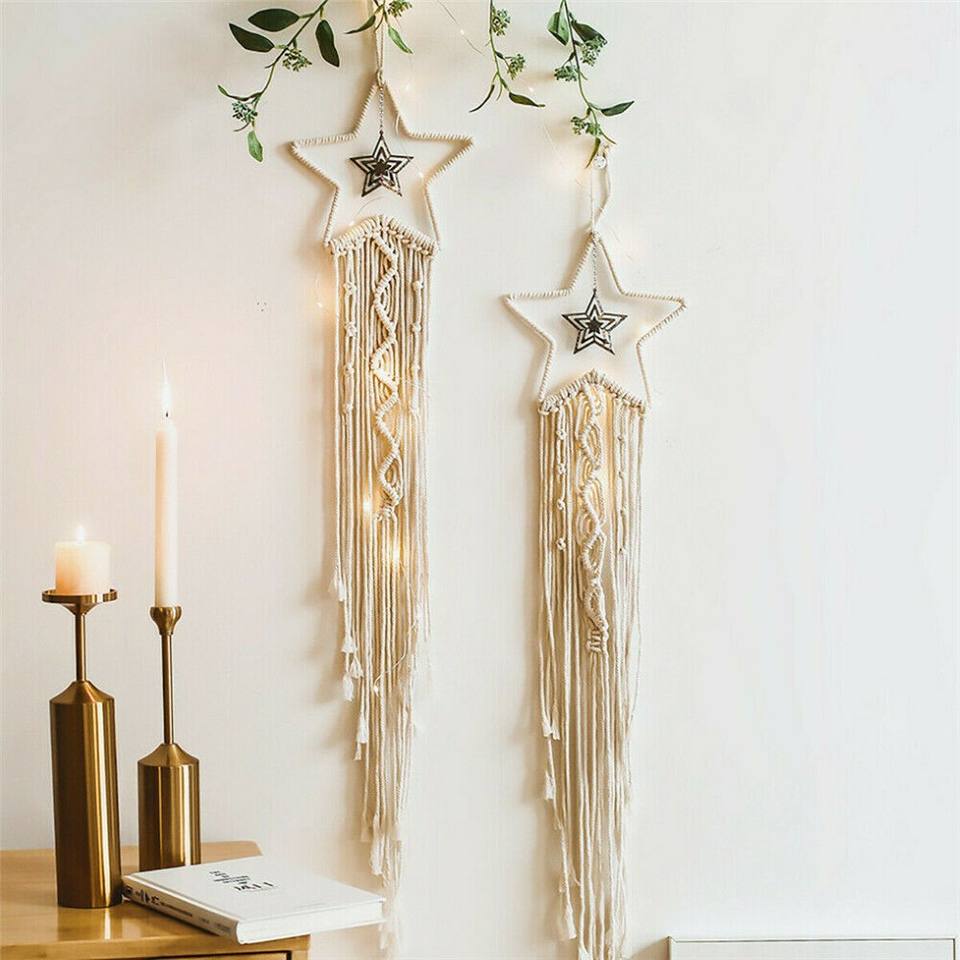 พรมแขวนผนังสไตล์ดั้งเดิมเชือกคอตตอนโบฮีเมียนทำด้วยมือสำหรับตกแต่งบ้านสำหรับห้องนั่งเล่นหรือวันหยุดคริสต์มาส