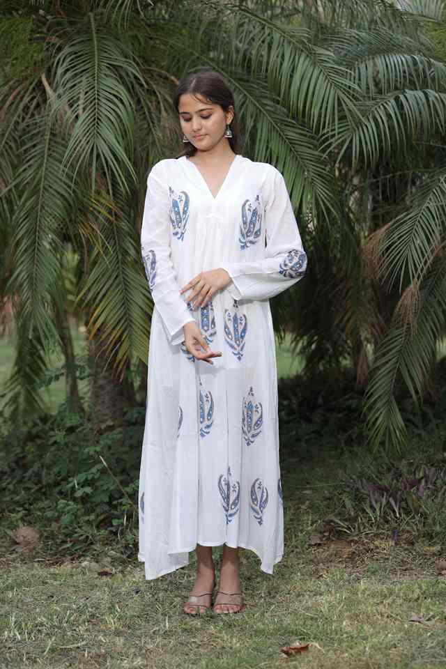 ชุดเดรสโบฮีเมียนทำด้วยมือสำหรับผู้หญิงชุดเดรสผ้าฝ้ายออร์แกนิกอินเทรนด์พิมพ์ลายดอกไม้ใส่สบายเอวธรรมชาติของขวัญวาเลนไทน์