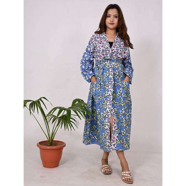 ชุดคลุมกิโมโนแขนยาวคอวี ผ้าฝ้ายพิมพ์ลายดอกไม้สไตล์โบโฮ ทำมือ 100% เป็นมิตรกับสิ่งแวดล้อม ชุดนอน ชุดคลุมอาบน้ำ สำหรับผู้หญิง ผ้าธรรมชาติ