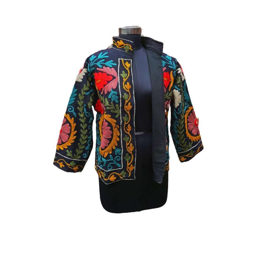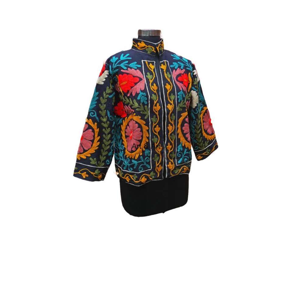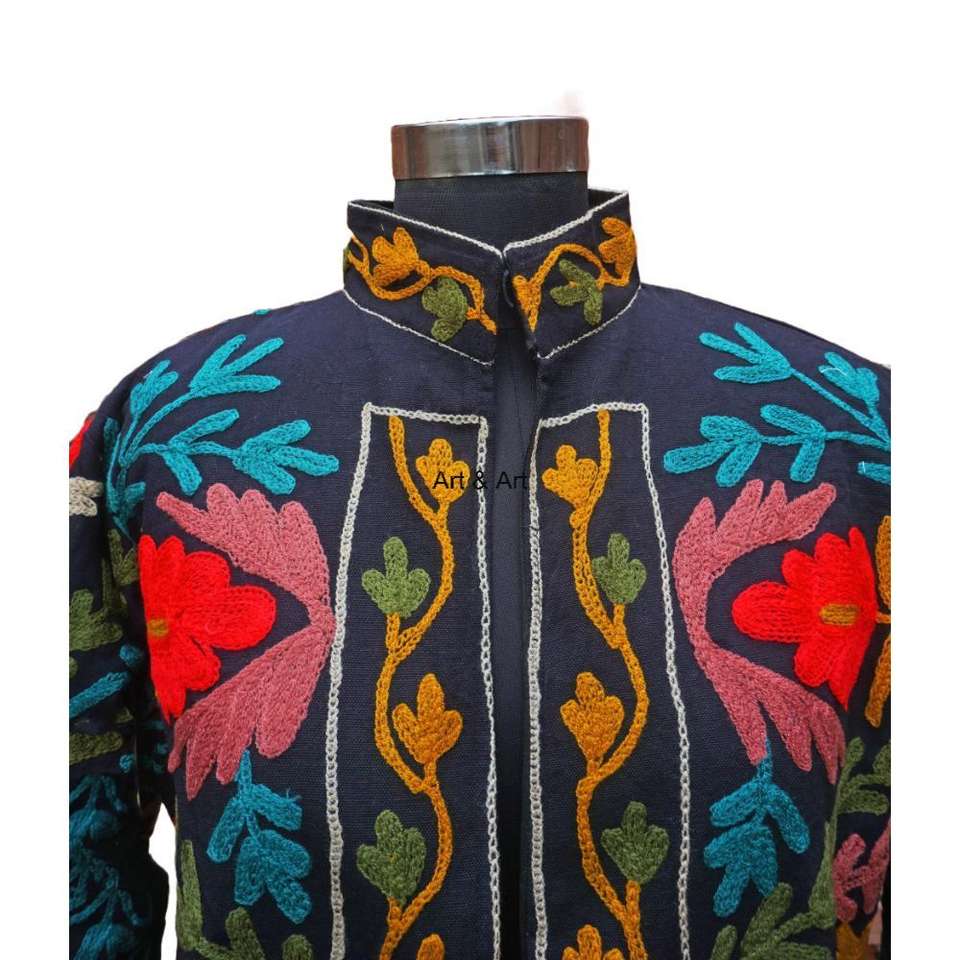 เสื้อแจ็กเก็ตผ้านวมผ้าฝ้าย100% ปักลายดอกไม้สไตล์โบฮีเมียนของผู้หญิงเป็นมิตรต่อสิ่งแวดล้อมฤดูหนาวกระเป๋าด้านหน้าหนึ่งขนาดเหมาะกับทุกคน