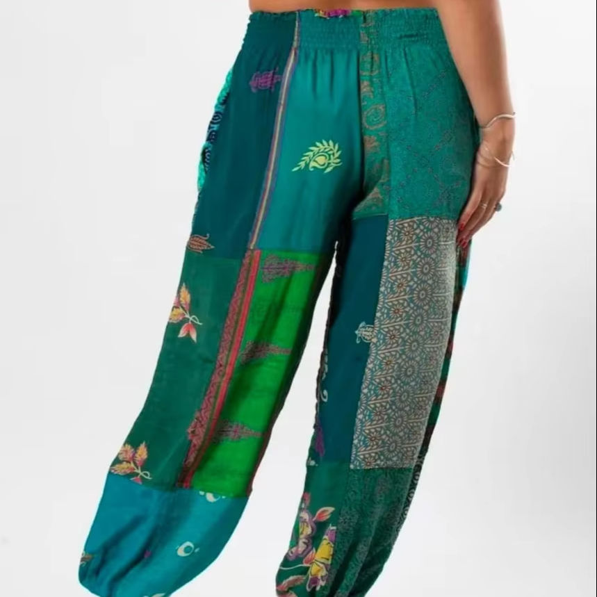 กางเกงโยคะแนวฮิปปี้งานเย็บปะแนวโบฮีเมียนของแฮนด์เมดชุดนอนผู้หญิงแบบลำลองสไตล์ระบายอากาศ