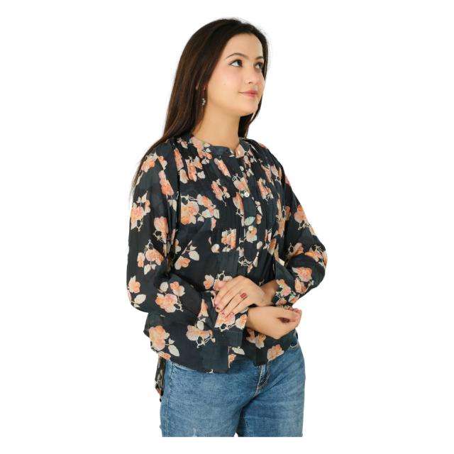 แฮนด์เมดbohoฮิปปี้pintuckท็อปส์ฤดูร้อนสวมใส่อย่างเป็นทางการเสื้อผ้าฝ้ายบล็อกพิมพ์ผู้หญิงเสื้อแขนยาว