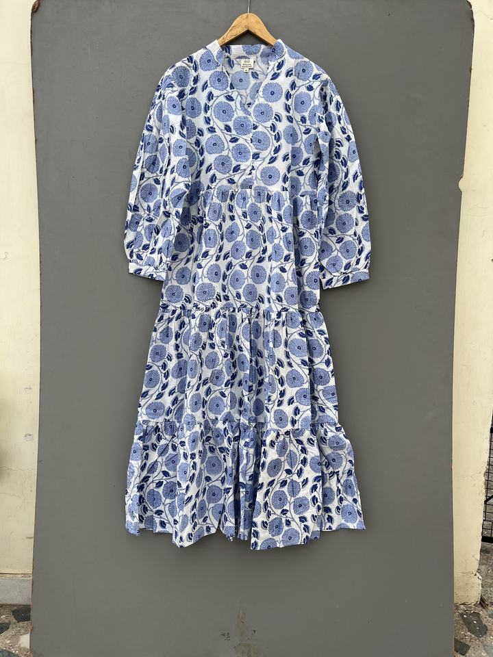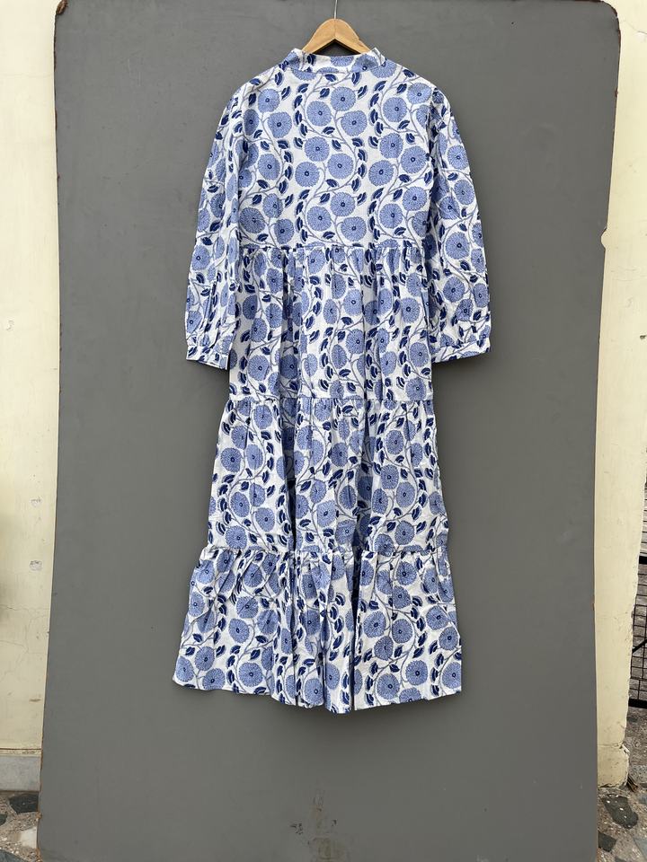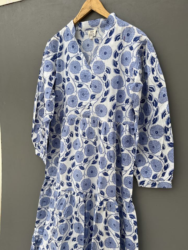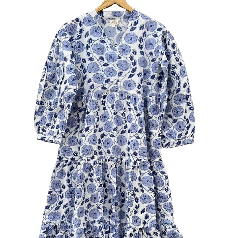 เดรสยาวโบโฮทำมือสำหรับผู้หญิง ลายดอกไม้ พิมพ์ลายบนผ้าฝ้าย เนื้อนุ่ม สวมใส่สบาย ฟรีไซส์ ตกแต่งด้วยกระดุม ดีไซน์ลายธรรมชาติ ซักได้