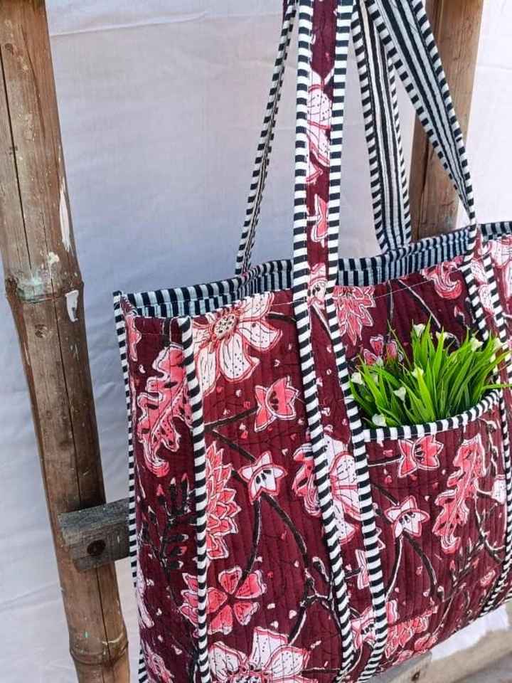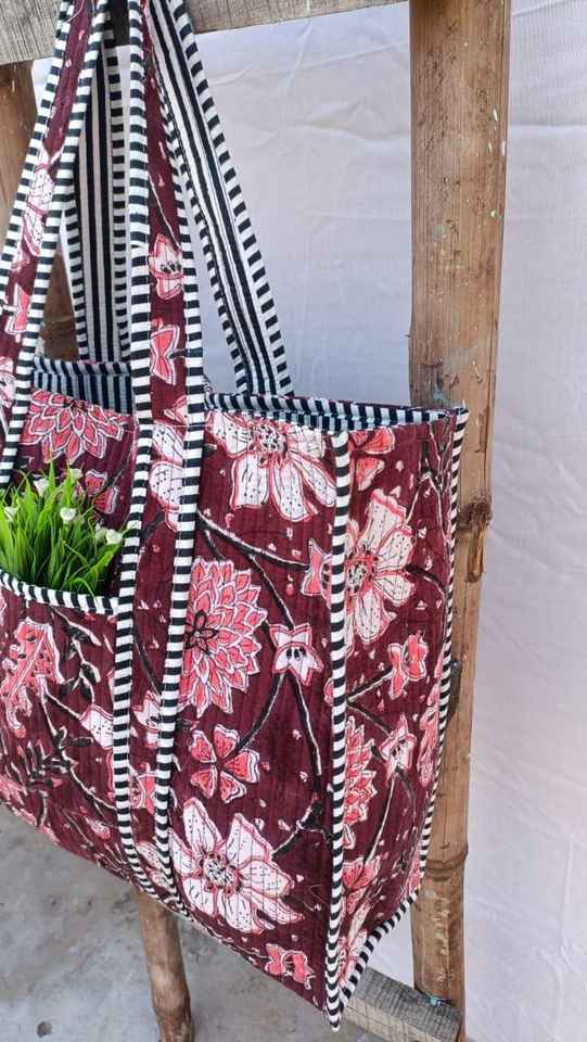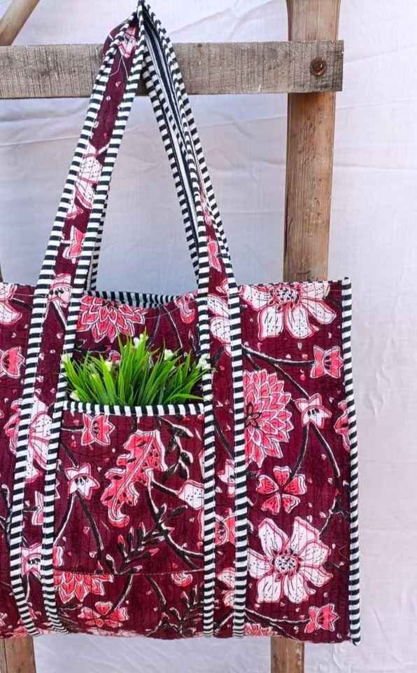 กระเป๋าโท้ทผ้าฝ้ายเย็บมือสไตล์โบโฮ พิมพ์ลายบล็อกด้วยมือ สำหรับช้อปปิ้ง เดินทาง สะพายไหล่ สำหรับผู้หญิง