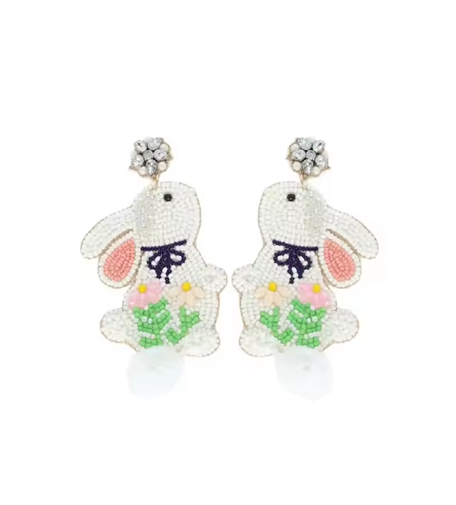 ต่างหูลูกปัดข้าวสไตล์โบโฮทำมือ ดีไซน์กระต่ายอีสเตอร์ สไตล์ชาติพันธุ์ อินเทรนด์ เหมาะสำหรับงานปาร์ตี้