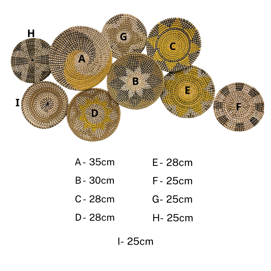 Handmade Boho Seagrass Wall Basket Set of 9 – Woven Decorative Wall Plates